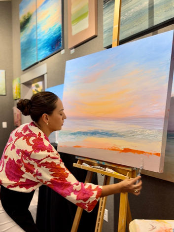 Cecilia Goett’s live painting performances transform your setting into a living work of art. Over the course of 2–3 hours, a vibrant painting unfolds on the canvas created entirely with palette knives and rich professional-grade paint. Inspired by the landscape and energy of the day, Cecilia responds intuitively to light and mood with bold, gestural strokes that reflect the ephemeral beauty of the natural world, engaging guests not only through her art, but through connection.